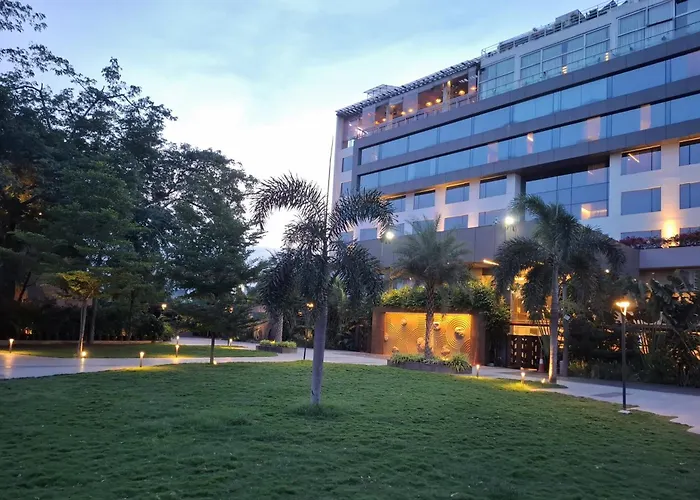 For business travelers, Daspalla Hyderabad provides a conference hall covering 304.7 m², along with video conferencing and secretarial services. The hotel's proximity to transport options, including Madhapur subway station and several bus stops, enhances accessibility. Hyderabad Rajiv Gandhi International Airport is 40 km away.