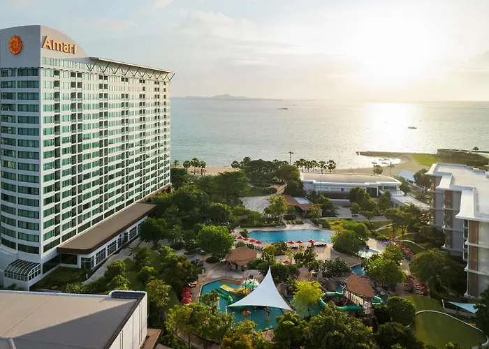 Amari Pattaya, a luxurious 5-star Pattaya hotel, features stunning sea views, three gorgeous pools, and a kids' water park. The hotel provides a wide range of amenities for families and business travelers, including dining options and wellness facilities.
