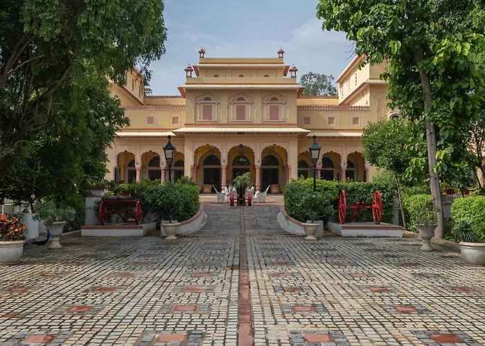 Hotel Narain Niwas Palace, a 4-star heritage property rated 8.6/10 on Booking.com, features 52 well-appointed rooms and suites amid lush gardens and traditional Rajasthani architecture. Dining options include Shikaar Bagh, a restaurant designed after royal hunting lodges, and Café Orleans serving local and international flavors. Additional amenities encompass a swimming pool, spa services, and a shopping courtyard enhancing guests' royal experiences.