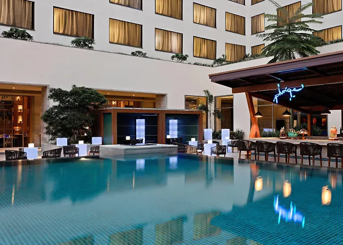 Sheraton Grand Bengaluru Whitefield Hotel & Convention Center is a family-friendly 5-star hotel featuring a large convention center and extensive dining options. Amenities include a refreshing outdoor pool, 24-hour Sheraton Fitness center, and the Shine Spa offering a variety of wellness therapies.