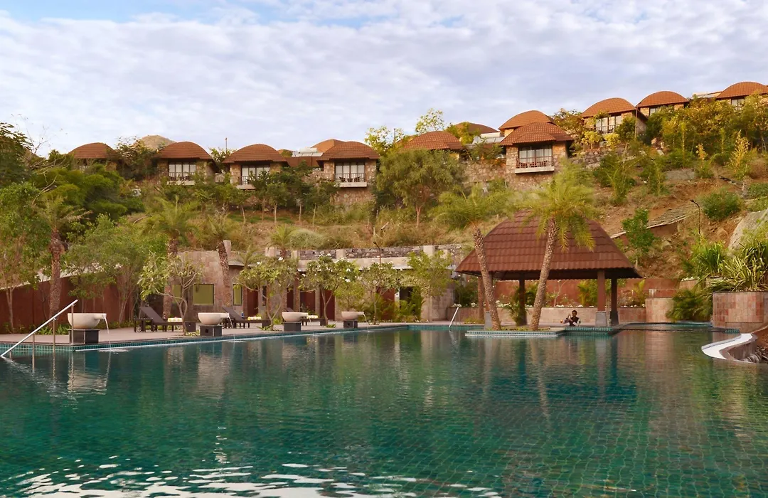 The Ananta Udaipur offers a luxury experience with 5-star amenities, sprawling across 36 hectares of greenery and featuring 243 opulent villas. This Udaipur hotel includes a rejuvenating spa, outdoor swimming pool, and eclectic dining options accommodating various palates.