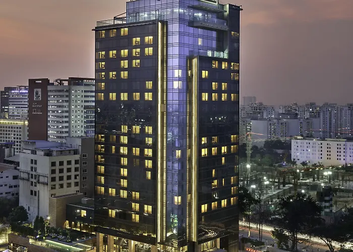 The Den, Bengaluru is a 5-star hotel featuring luxurious accommodations in the central business district of Whitefield. Offering modern amenities and a vibrant dining scene, it caters to both business and leisure travelers. Guests can benefit from amenities like an open-air infinity swimming pool and unique dining options, including a rooftop specialty restaurant.