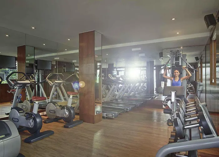 The hotel features two outdoor swimming pools, a fitness centre, and a massage centre, providing recreational options for visitors. Access to a sports zone and bicycle rental is also available.
