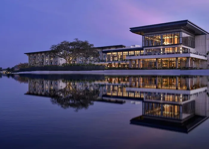 JW Marriott Hotel Bengaluru Prestige Golfshire Resort & Spa features luxurious accommodations, multiple dining options, and extensive recreational facilities including an outdoor swimming pool and a wellness area. This 5-star resort has a rating of 8.8/10 on Booking.com.