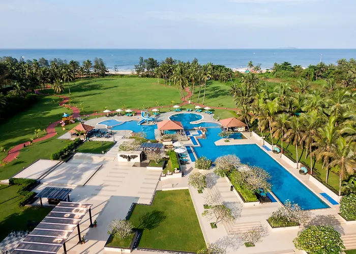 Kenilworth Resort & Spa, Goa is a 5-star hotel offering expansive grounds with direct access to Utorda Beach. Guests can enjoy six dining options, a large swimming pool, and a variety of recreational activities, catering to both families and couples.