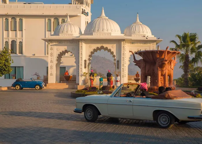 Radisson Blu Udaipur Palace Resort & Spa features a beautiful lakeside setting with 244 luxury rooms and multiple dining options. This 5-star Udaipur hotel includes a spa, two outdoor pools, and extensive event facilities, including Rajasthan's largest banquet hall.