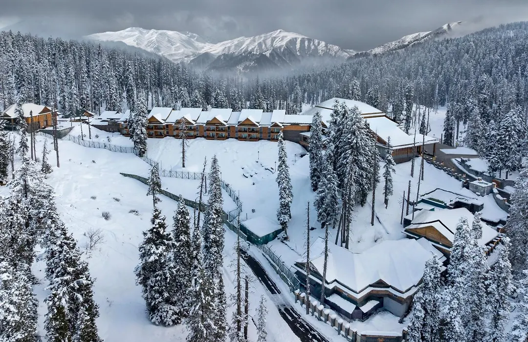 The Khyber Himalayan Resort & Spa is conveniently located near the Gulmarg Gondola, providing easy access to skiing at the highest ski point in the Himalayas. The area offers various trekking routes, apple orchards, and the world's highest golf course within walking distance.