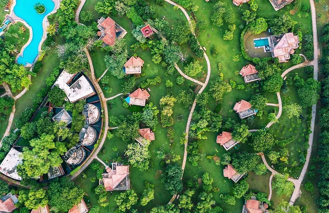 The Westin Sohna Resort & Spa is a 5-star luxury resort covering 15 hectares with ample greens. This pet-friendly getaway features extensive facilities for rejuvenation, including a variety of pools and dining options. The hotel maintains a high rating of 8.5/10 on Booking.com.